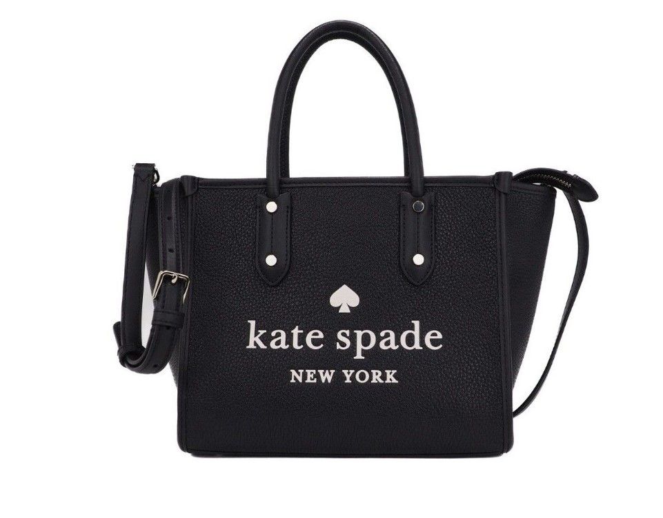 Ella Small Black Pebbled Leather White Logo Crossbody Tote Handbag