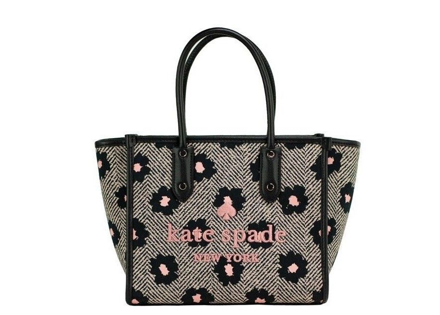 Ella Herringbone Floral Small Canvas Printed Crossbody Tote Handbag