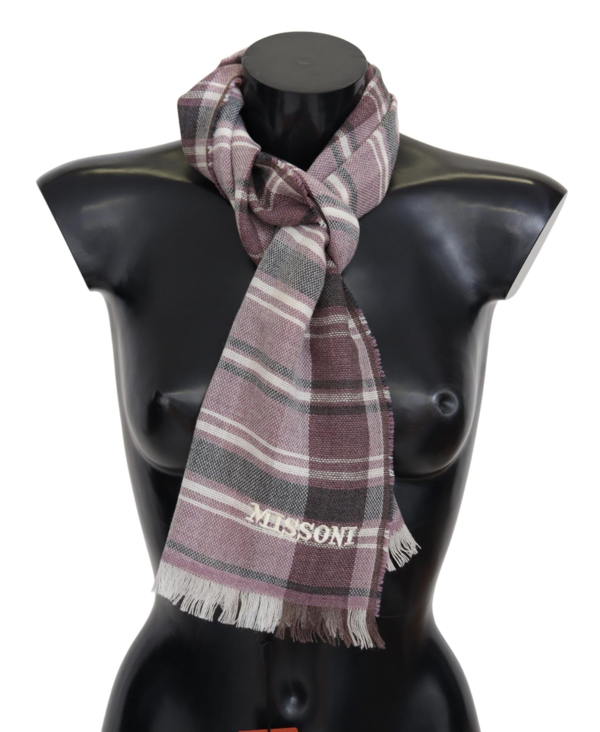 Elegant Multicolor Wool Scarf with Logo Embroidery