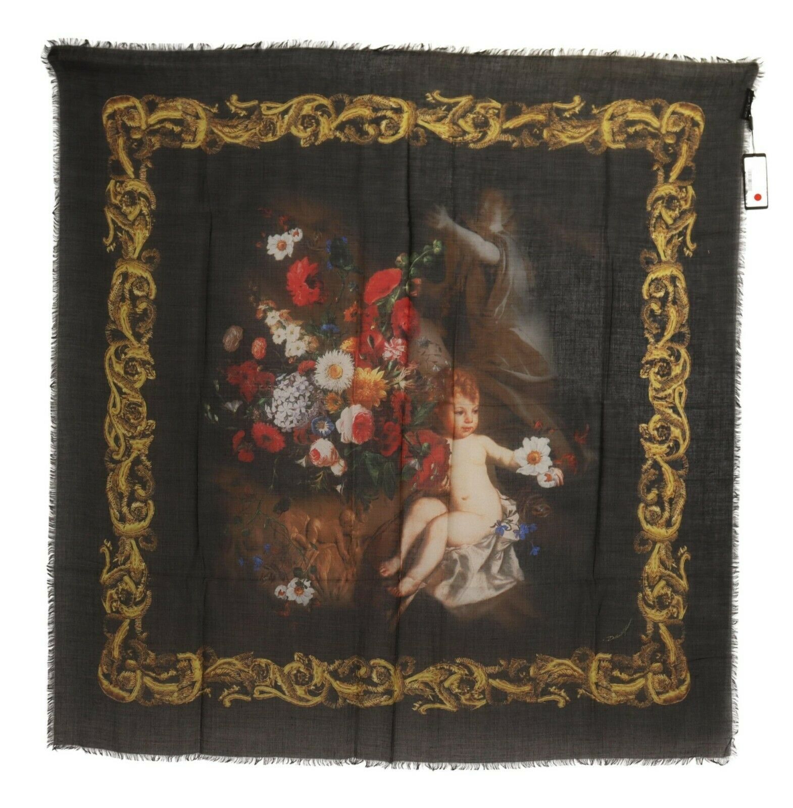 Elegant Wool Knit Logo Scarf – Unisex Black