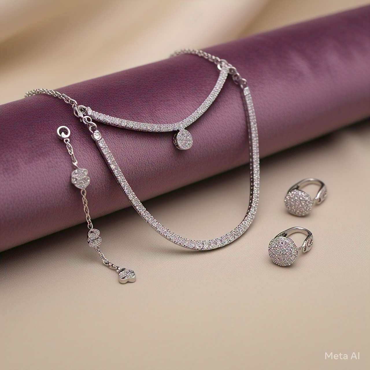 Silver 925 Sterling Silver Crystals Pin Collar Brooch