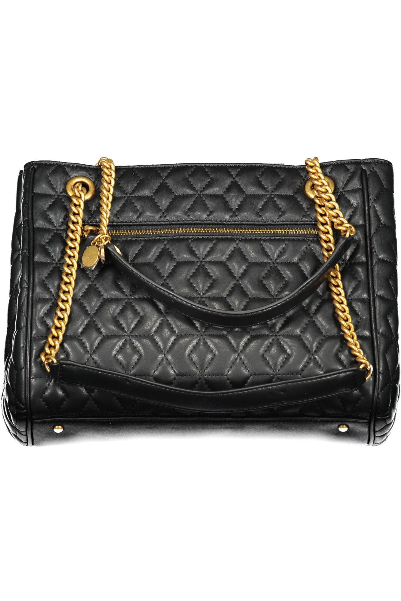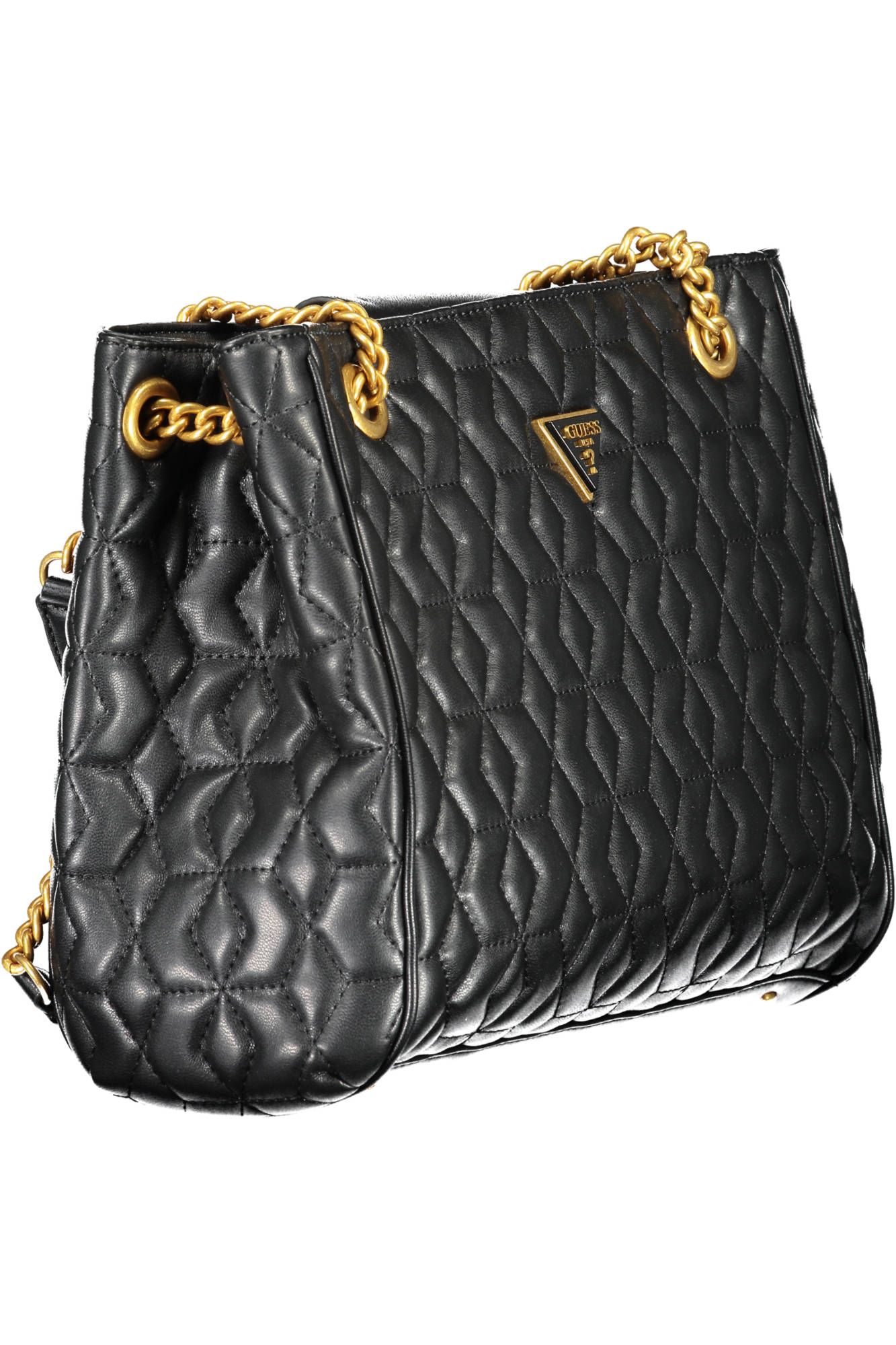 Embrace the essence of chic sophistication with the ‘Guess Jeans’ quintessential black handbag, a coveted piece for any fashion-forward wardrobe. Meticulously crafted from luxurious polyurethane, this exquisite accessory showcases 2 elegant chain shoulder handles, providing a striking contrast with its sleek black exterior. The bag features a zip closure complemented by an automatic lock, ensuring your essentials stay secure in style. An external pocket and an array of compartments, including a central pocket and an internal slot, cater to functional needs without compromising on style. Adorned with the iconic Guess logo, this handbag is the epitome of glamour meets functionality.