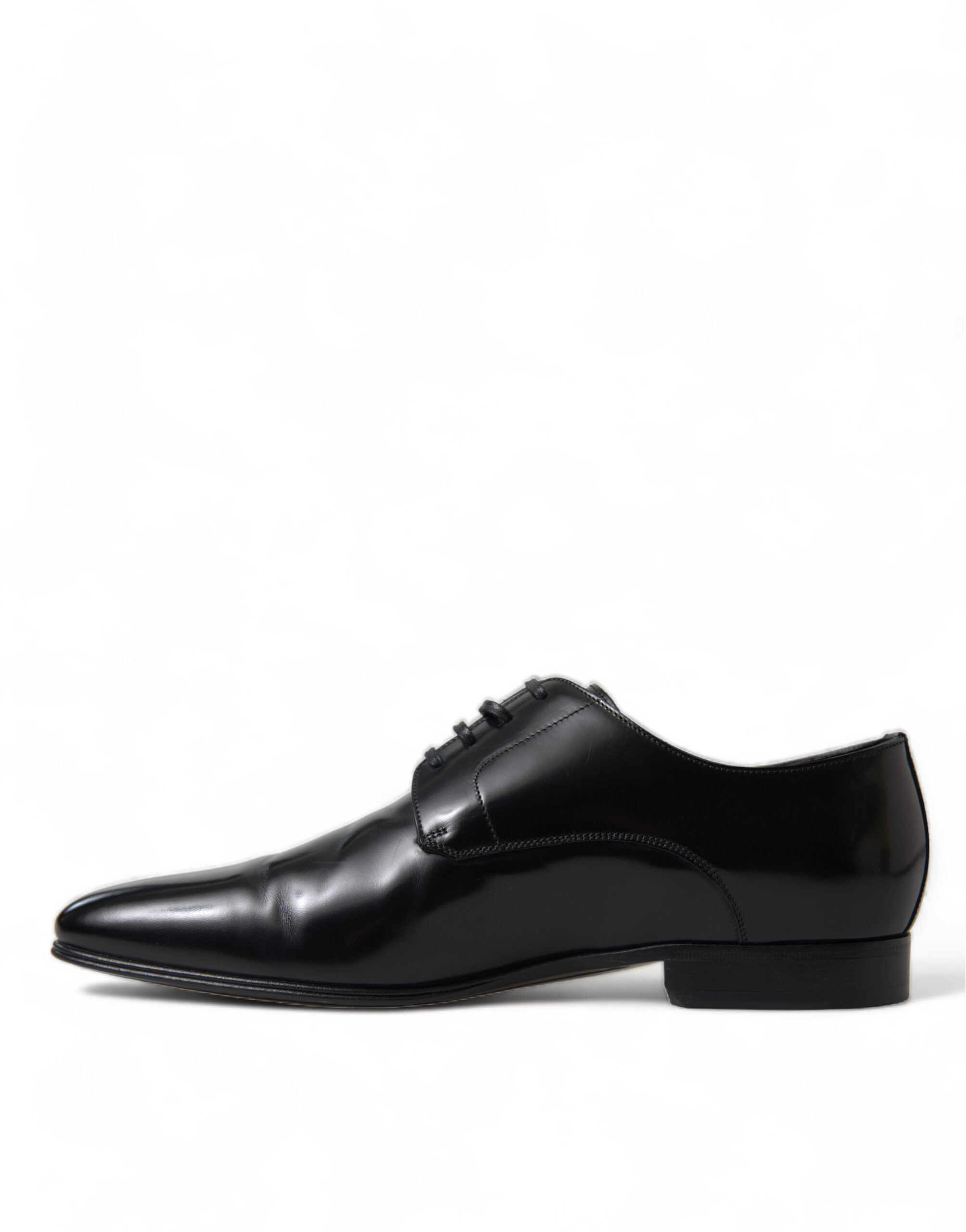 Step into sophistication with these Dolce & Gabbana lace-up Derby dress shoes, where elegance meets premium craftsmanship. These shoes are perfect for the modern gentleman seeking to elevate his formal attire. Made in Italy, these shoes feature a sleek black leather design that showcases luxury in every step.