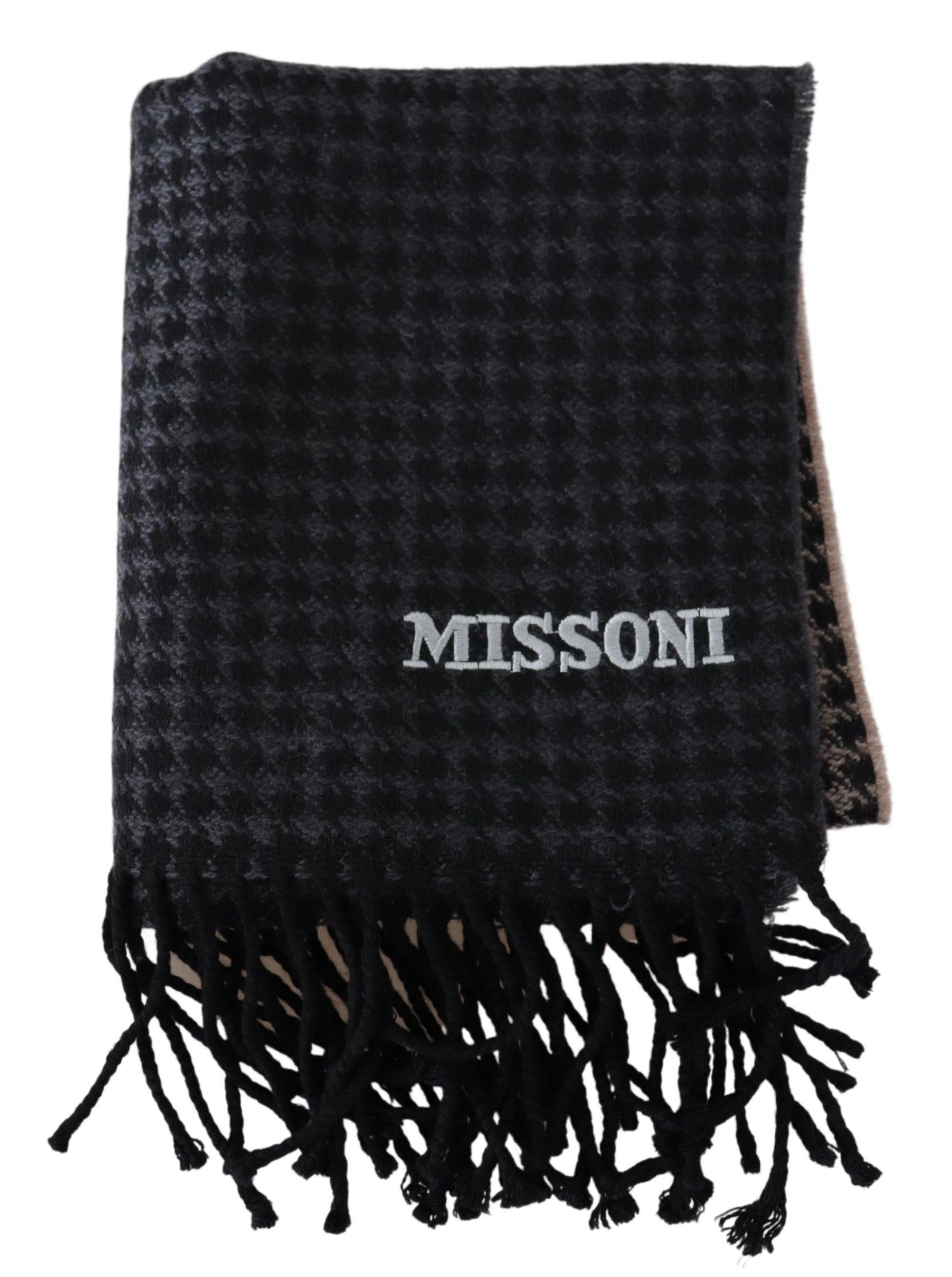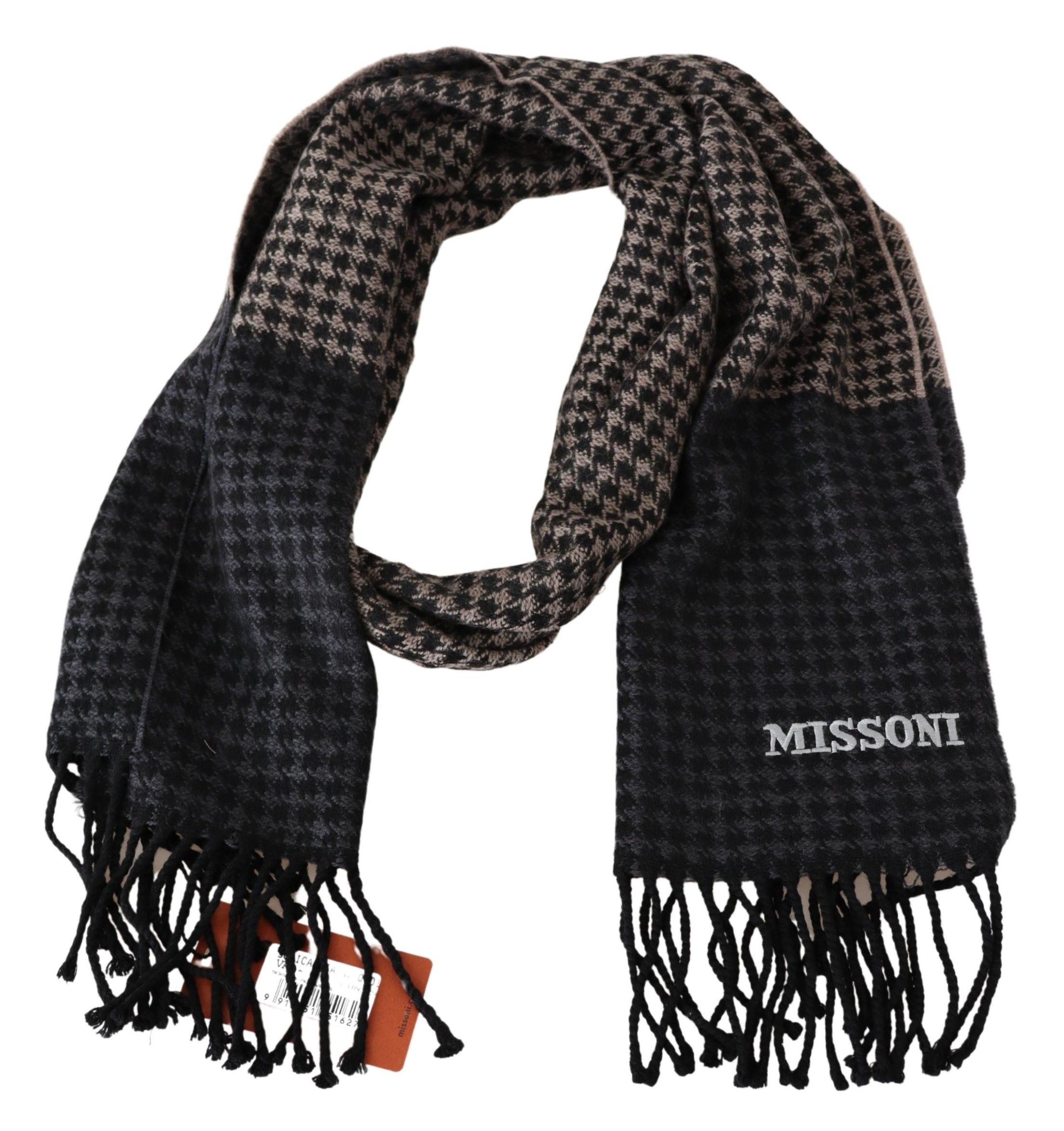 Wrap yourself in luxury with this stunning Missoni wool scarf, featuring a classic houndstooth pattern accented by the iconic brand logo embroidery. Its vibrant multicolor design and high-quality fabric make it a timeless accessory for any fashion connoisseur, bringing a touch of Italian elegance to your wardrobe.