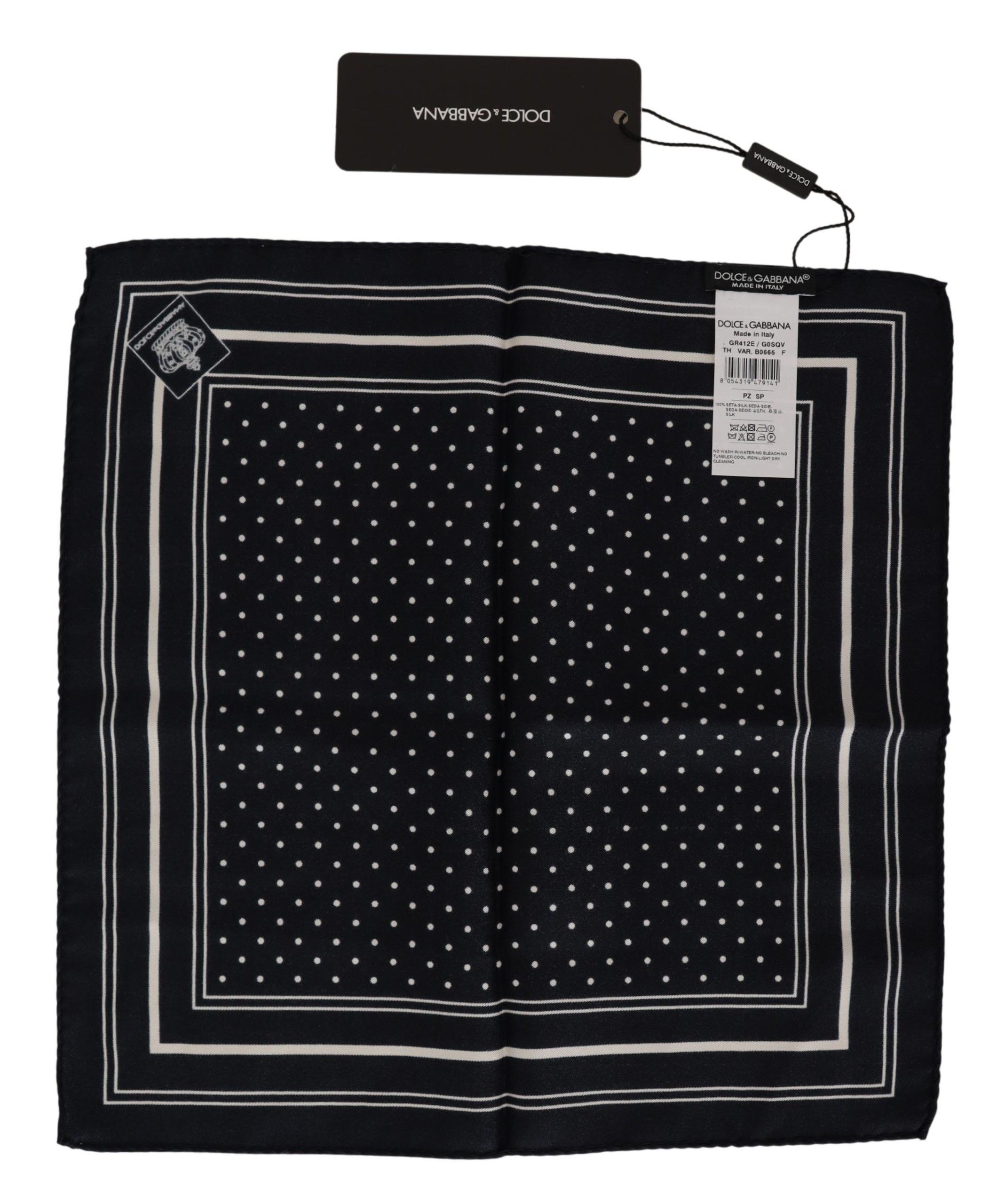 Adorn your suiting with a touch of Italian sophistication courtesy of this exquisite silk pocket square from Dolce & Gabbana. Fashioned with a playful dot print, this stunning accessory adds an element of refined elegance to any gentleman’s wardrobe. Perfectly crafted to slip seamlessly into a jacket pocket, it’s an essential piece for those who appreciate the finer details in fashion.