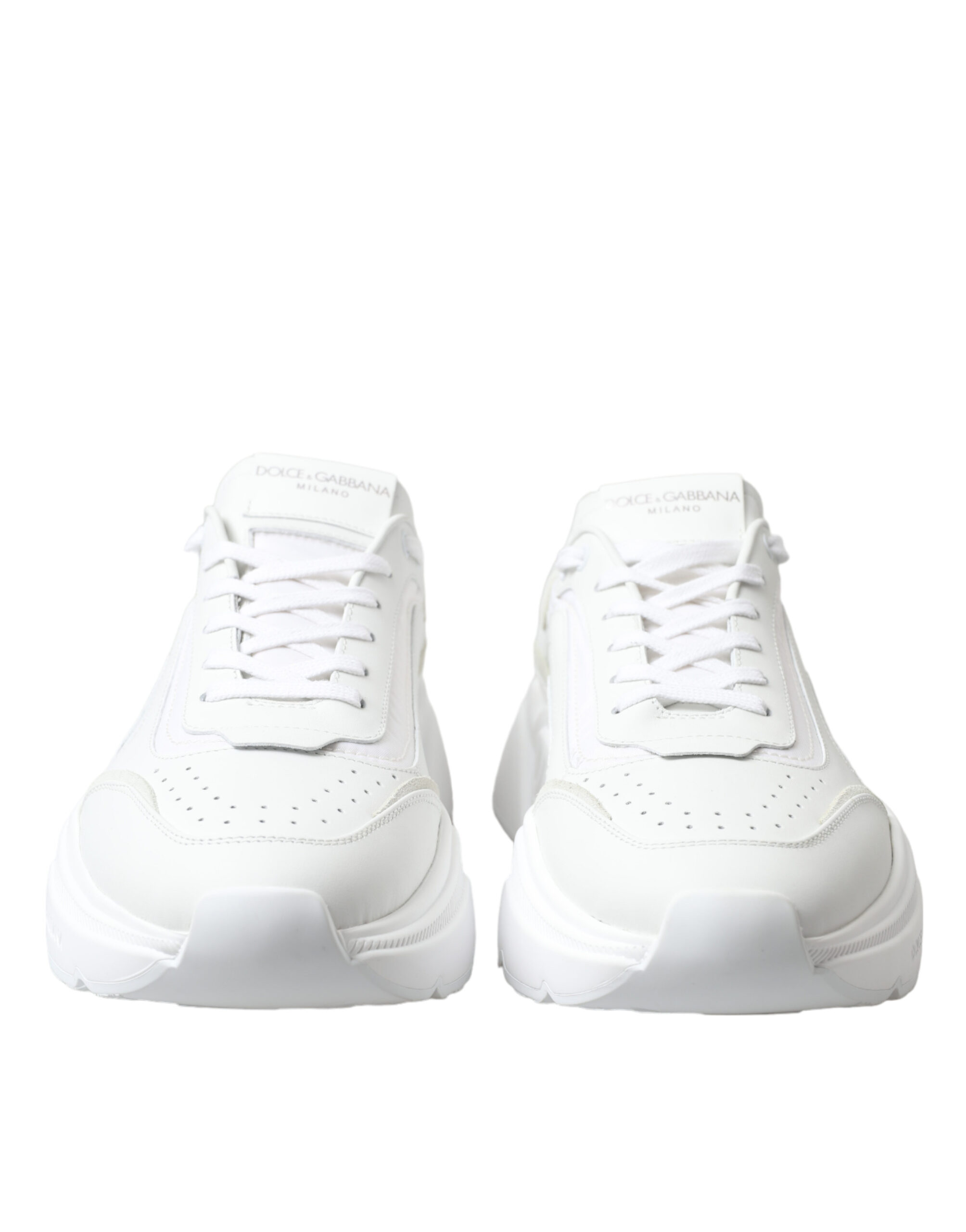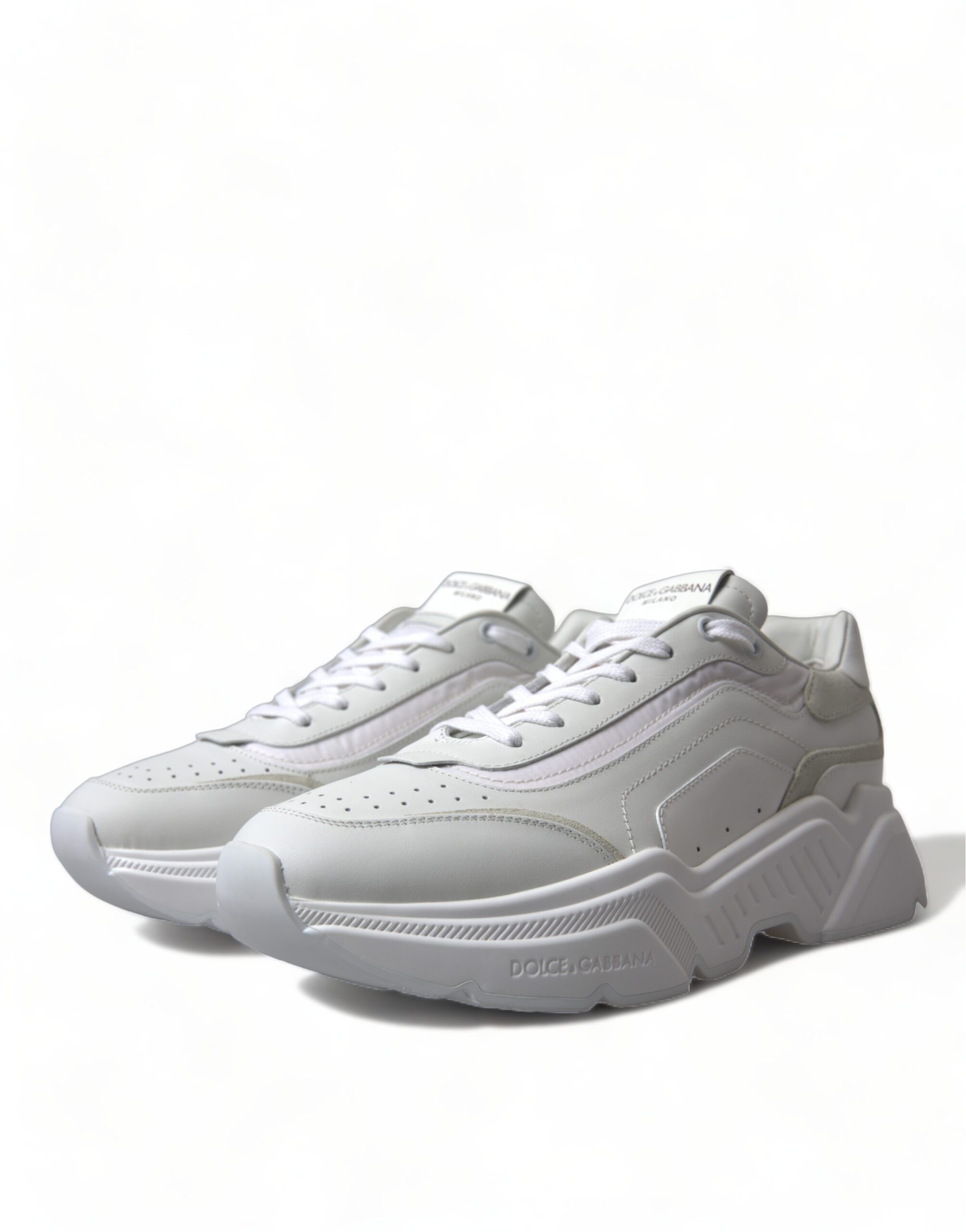 Step out in style with the latest Dolce & Gabbana DAYMASTER Casual Sneakers. Immaculately crafted in Italy, these white leather sneakers embody high-end fashion and superb craftsmanship, designed to offer comfort without sacrificing style. They feature striking logo details and boast a durable rubber sole, assuring both luxury and longevity.