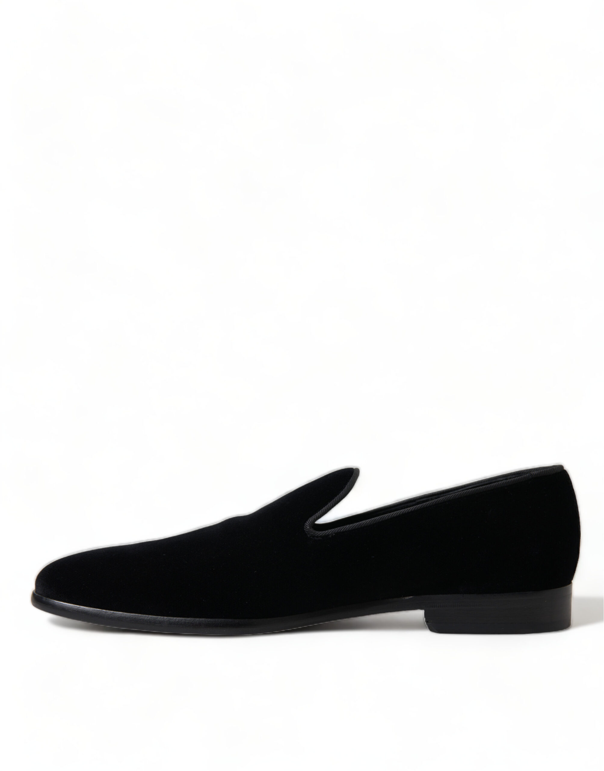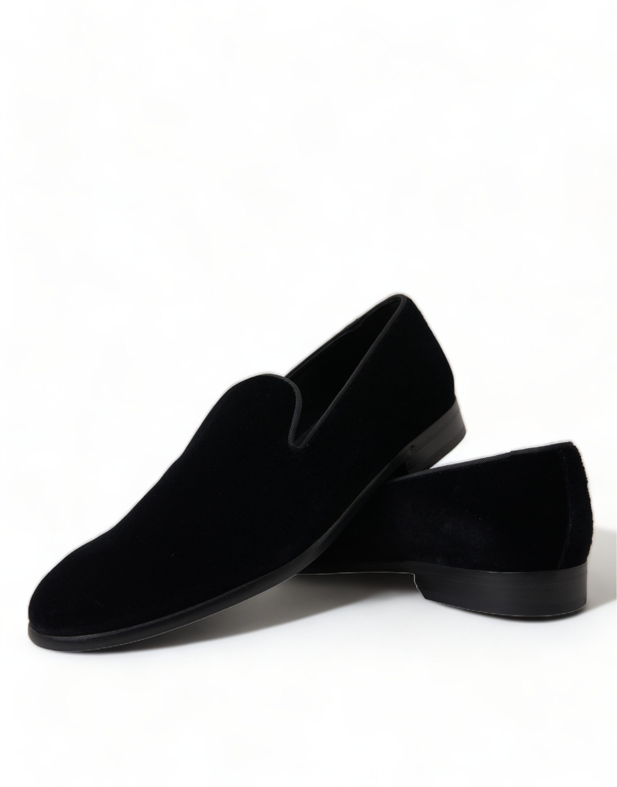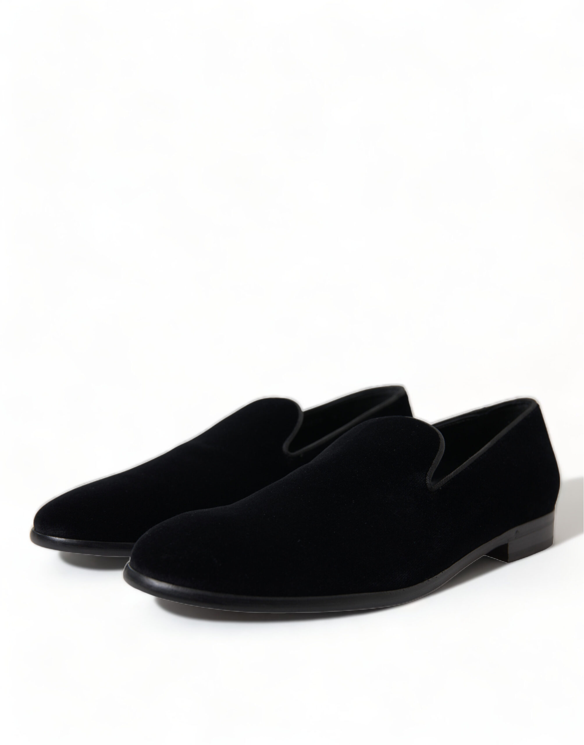 Indulge in the epitome of luxury footwear with these exquisite velvet loafers from Dolce & Gabbana. Featuring superior craftsmanship from Italy, these loafers are not just a statement of style but a testament to high-end fashion. The rich black velvet complements any sophisticated ensemble, making them perfect for any gentleman seeking to elevate his wardrobe.