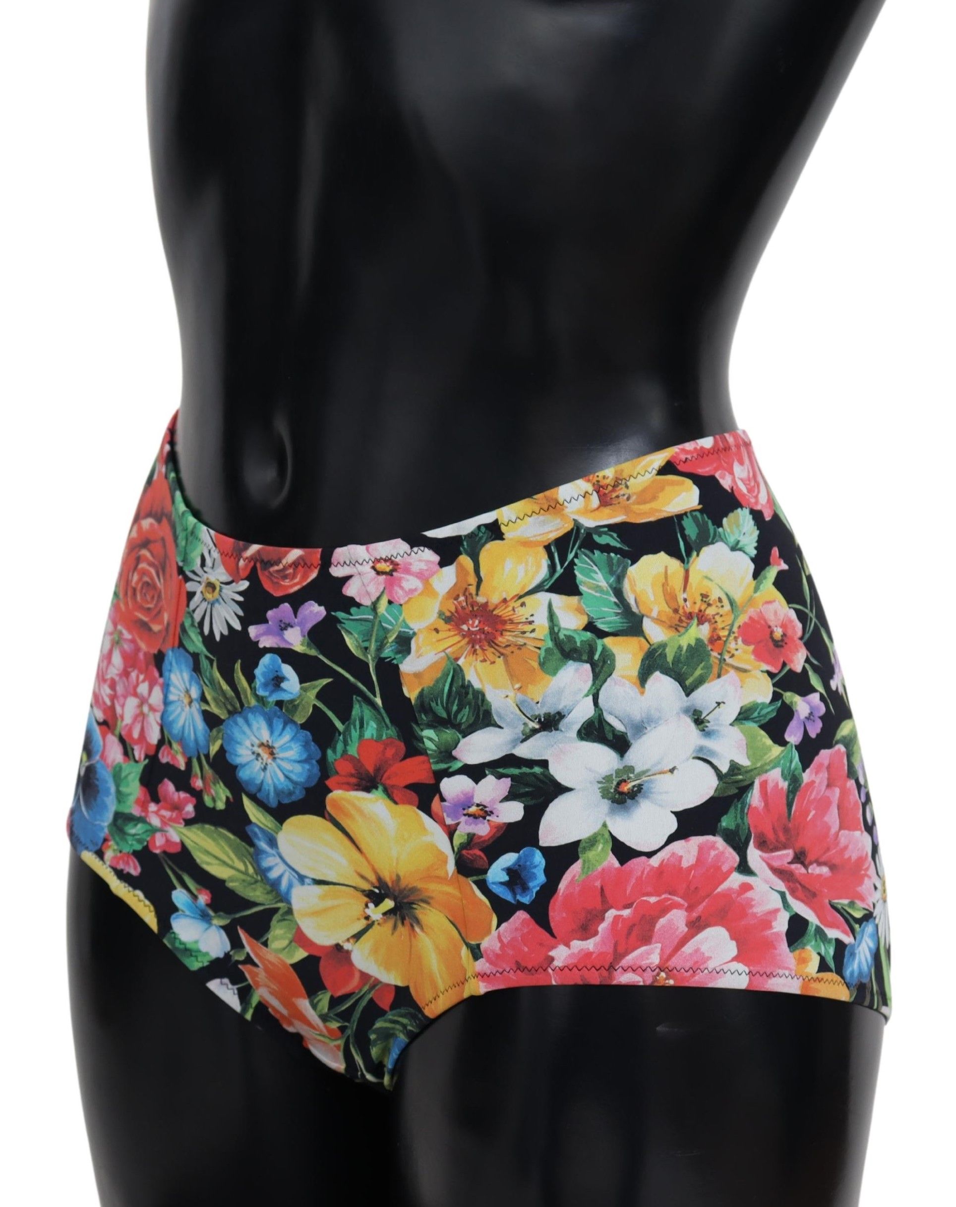 Embrace the summer with a touch of luxury in Dolce & Gabbana’s stunning floral high waist bikini bottom. Perfect for fashion-forward beachgoers, this piece pairs beautifully with your favorite top for a complete chic poolside look. The high-quality blend of nylon and elastane ensures a flattering fit and enduring comfort as you soak up the sun or take a dip in the ocean. Detailed with the iconic logo and crafted in Italy, this swimwear is an emblem of sophistication and style.