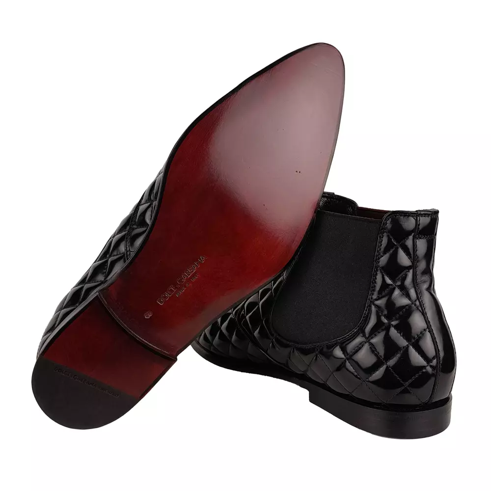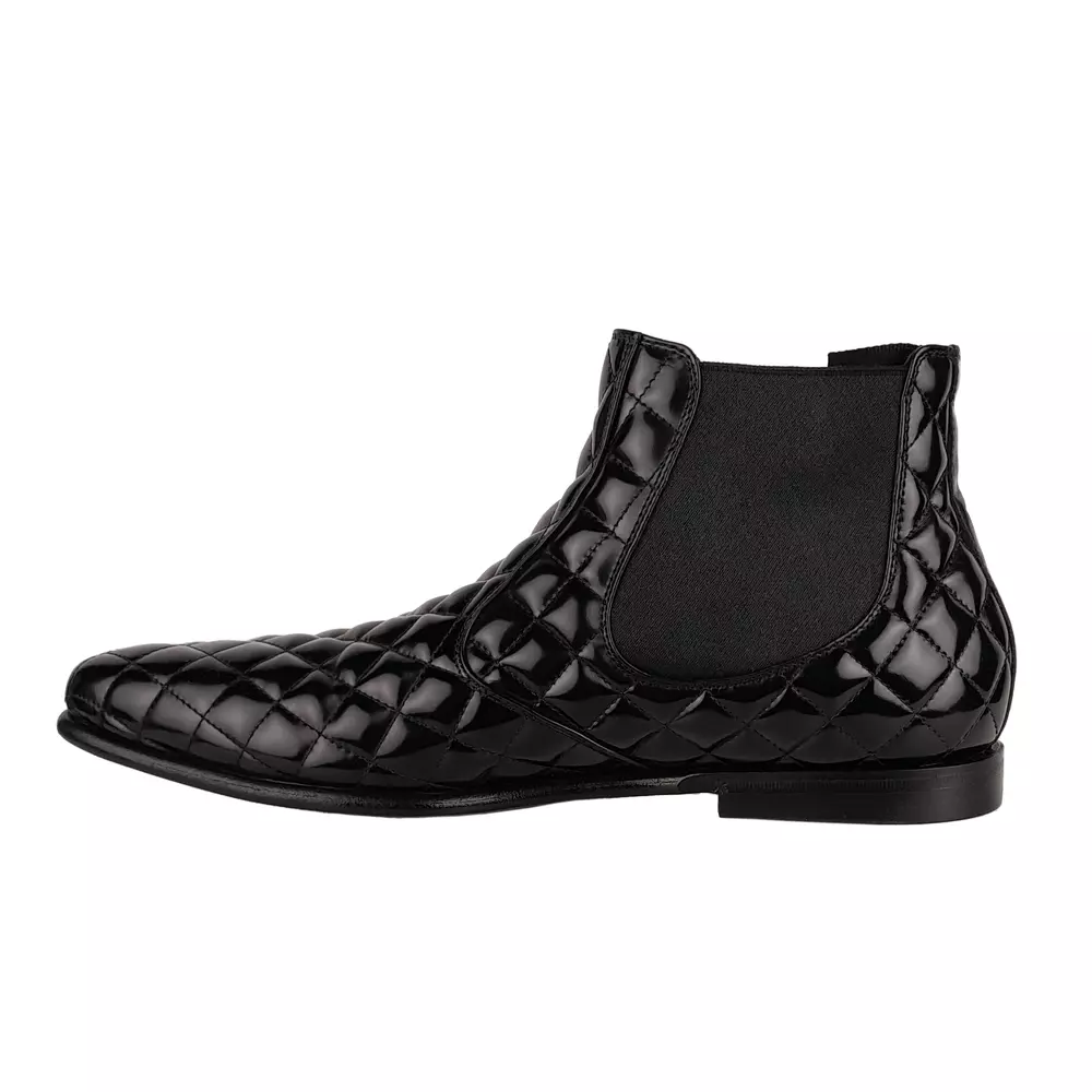 Experience luxury and timeless style with our Quilted Calfskin Leather Beatles Ankle Boot. Made in Italy, these pointed front ankle boots feature premium calfskin leather and are designed with a stretch fabric side for a sleek silhouette. The insole boasts a comfortable blend of leather and quilted fabric, ensuring both elegance and comfort for the distinguished gentleman.