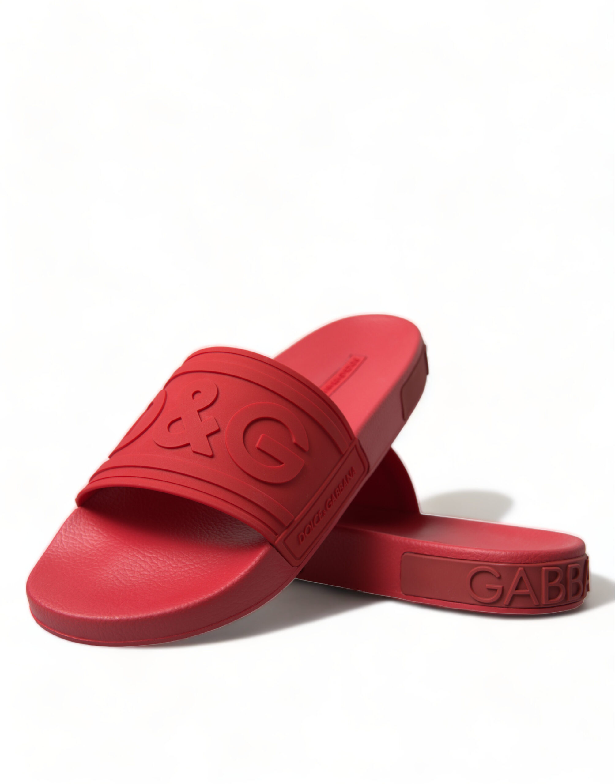 Step into the epitome of luxury and comfort with these Dolce & Gabbana men’s slides. The perfect blend of style and relaxation, these sandals make a striking statement with their vibrant red hue and iconic logo details. Designed with a durable material composition and rubber sole, they deliver both longevity and ease, making them the ideal choice for a lavish poolside look or a casual city stroll. Crafted in Italy, they exemplify the finesse and craftsmanship synonymous with Dolce & Gabbana.