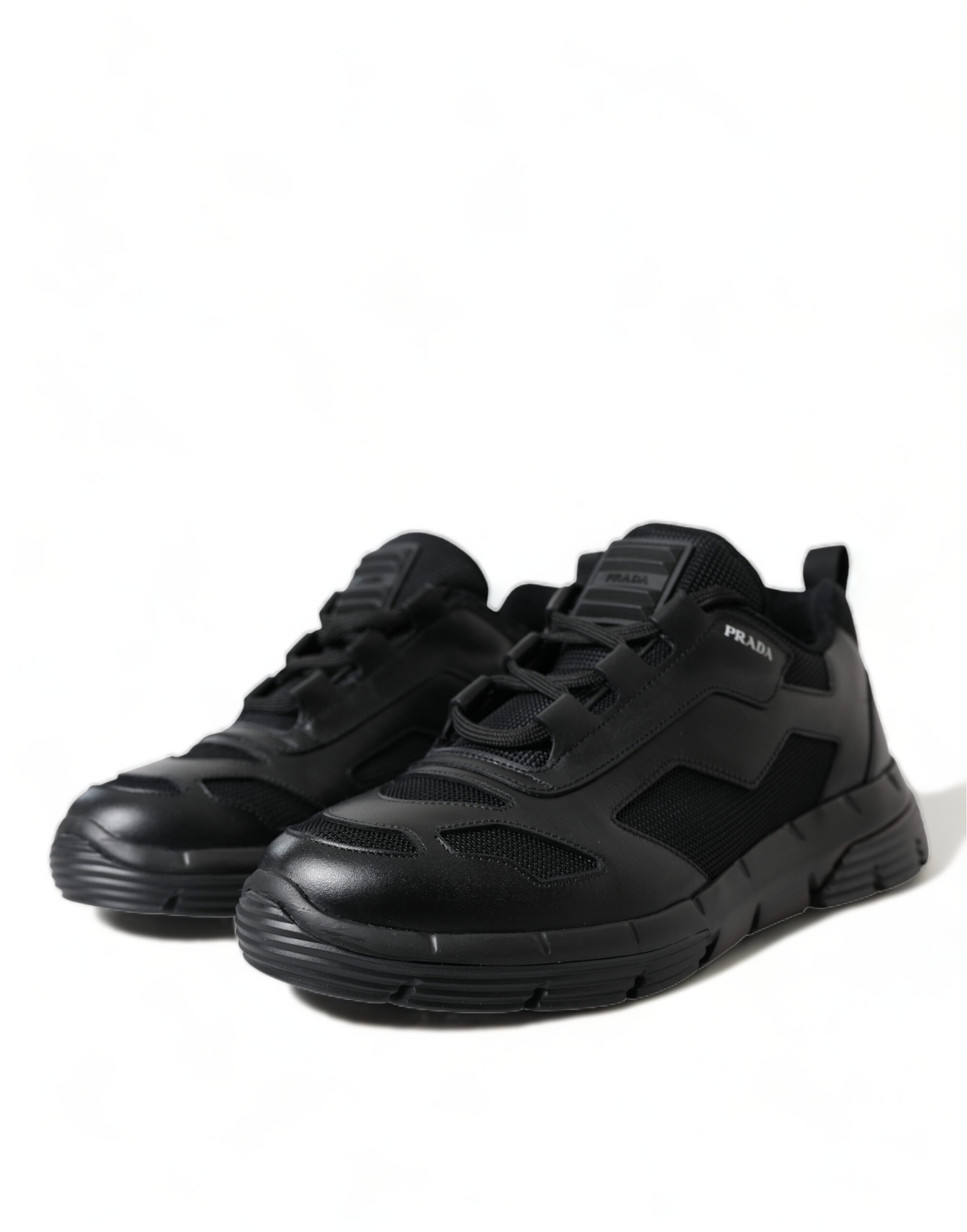 Step into luxury with these sleek, 100% Authentic Prada sneakers, exuding elegance with every step. Crafted from the finest leather and fabric, these low top sneakers boast a refined black colorway that offers versatile styling. An embodiment of both form and function, the light EVA sole provides unparalleled comfort, perfect for the fashion-forward individual on the go. Adorned with subtle logo details, these Italian-made shoes are sure to elevate your footwear collection.